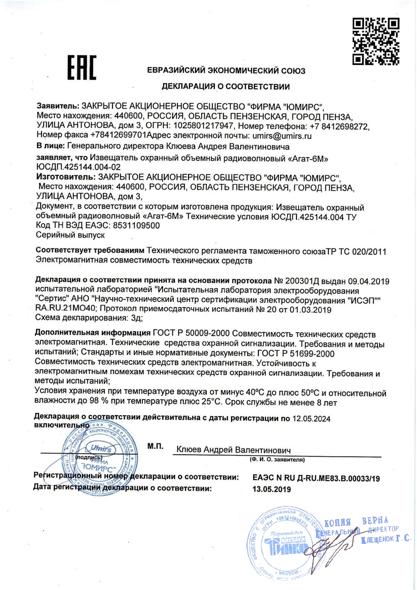 Краткое описание: Извещатель охранный объемный радиоволновый, f-раб.24150±100 МГц, дальность зоны обнаружения 12 м, регулировка размеров зоны обнаружения, 1 тревожный выход (НЗ), тампер, U-пит.10…30 В, I-потр.70 мА, t-раб.-40…+65°С, 105х65х45 мм