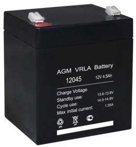 Краткое описание: Свинцово-кислотный, герметичный аккумулятор, 12В/4,5Ач, ножевые клеммы 4,8 мм (F1), 90х70х107мм, 1,29кг