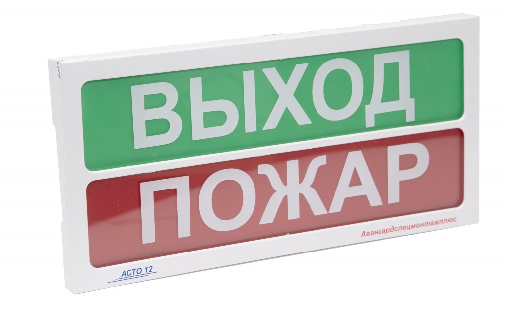 • Оповещатели пожарные с двумя подсвечиваемыми, независимо управляемыми полями надписей: световые «АСТО12-2», «АСТО12/1-2», предназначены для подключения к приборам управления пожарным с целью информирования людей о возникновении пожара, путях эвакуации, режимах работы автоматической системы противопожарной защиты посредством формирования светового и звукового сигналов, в качестве исполнительного элемента системы оповещения. Оповещатели не предназначены для применения вне помещений, а так же во взрывоопасных зонах.