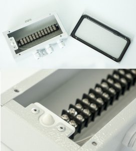 Краткое описание: Распред.коробка на 12 цепей с гермовводами, под винт, металл., IP55, t-раб -50...+65С, 173х136х50 мм. Датчик вскрытия корпуса в комплекте.