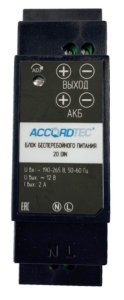 Краткое описание: Резервированный источник питания с креплением на DIN рейку; U-вх. 190…265В, U-вых.12…14 В (регул.), I-вых.2 А, I-вых. 2.5 А(max); под АКБ 12 В 12 А·ч; световая индикация режимов работы, защита от короткого замыкания и перегрузки, защита АКБ от глубокого разряда; t-раб. 0…+50°С, 27х93х56 мм