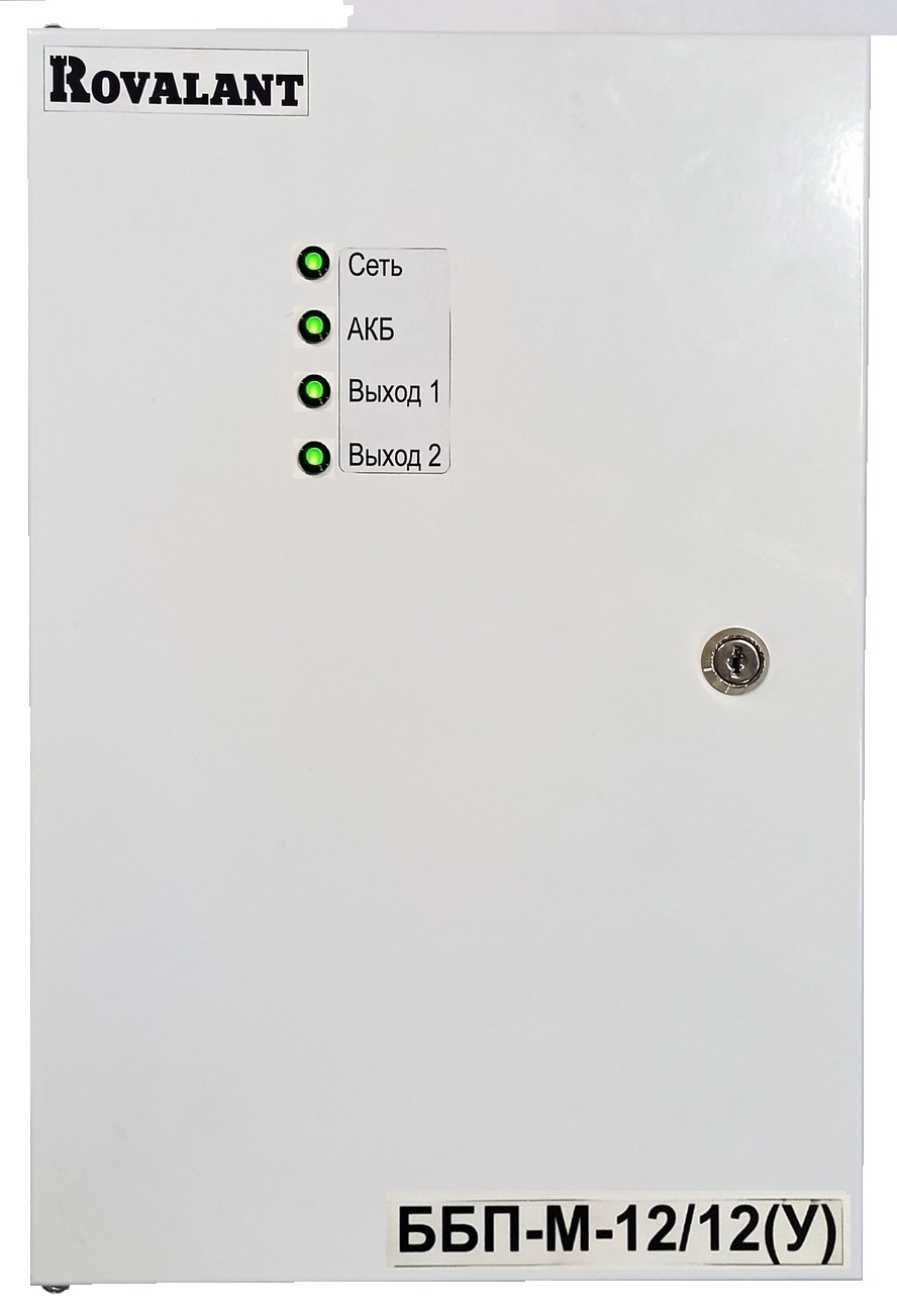 Блок бесперебойного питания ББП-М-12/12(У) предназначен для обеспечения бесперебойного электропитания стабилизированным напряжением 12В постоянным током до 12А технических средств противопожарной защиты при использовании дополнительного источника резервного питания – аккумуляторной батареи. Имеет два независимых выхода питания внешней нагрузки, осуществляет контроль своих параметров и передачу информации о состоянии по линии связи RS485.