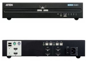 Краткое описание: Переключатель KVM защищенный, KVM+Audio+USB 2.0, 1 консоль PS/2USB+2xDP => 2 cpu USB+2xDP, без шнуров, 3840x2160 30Гц, настол., исп.стандарт.шнуры, без OSD, некаскад., (DisplayPort ver 1.1), АС 100-240 В, 1А, 0…+50°C, 335х164х65 мм.