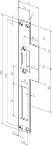 Краткое описание: Плоская запорная планка с вырезами под язычок и ригель; 250х44 мм; толщ. 3 мм; нерж.
