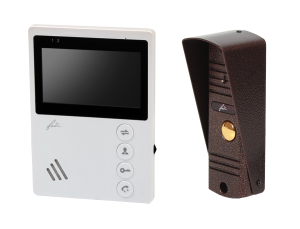 Краткое описание: Комплект видеодомофона FX-VD5N-KIT (ОНИКС 5): Монитор видеодомофона FX-VD5N, 4.3” TFT LCD; Разрешение: 480×272; Подключение: до 2-х вызывных панелей; Питание: AC 110~240V 50Гц; Цвет корпуса: белый; -10°С…+50°С; 120х172х20мм. Вызывная видеопанель FX-CP7, цвет - медь, Разрешение камеры: 700 ТВЛ; ИК-подсветка, дальностью до 5 метров; DC 12V от монитора; Крепление: накладное; Козырек и Уголок в комплекте; -45°С…+50°С; 122x41x23мм.