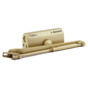 Краткое описание: Доводчик для дверей весом 80 - 140 кг. Класс доводчика EN4-6. двухскоростной, с рычажной тягой, установочный размер 165х19 мм, габариты 182х62х42 мм, -45...+60 °С, цвет - золото.