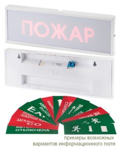 Краткое описание: Оповещатель пожарный световой, светодиодный, метал.рамка, скрытая надпись; U-пит. номин. 12...36 В, I-потр. ≤20мА, IP41, t-раб.-10...+55°С, габ. размеры 300х100х25 мм.