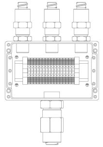 Краткое описание: Коробка коммутационная взрывозащищенная 1ExeIIBT5Gb, клеммник 0.5...4 мм.кв. (I=25А) -16 шт, УХЛ1, IP67, t-раб.-60...+85°С, 100х160х81 мм. Корпус из алюминиевого сплава, универсальные кабельные вводы: под кабель 6...12 мм в металлорукаве 15 мм - 3 шт, под кабель 10...16 мм в металлорукаве 20 мм - 1 шт