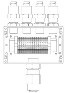Краткое описание: Коробка коммутационная взрывозащищенная 1ExeIIBT5Gb, клеммник 0.5...4 мм.кв. (I=25А) -16 шт, УХЛ1, IP67, t-раб.-60...+85°С, 100х160х81 мм. Корпус из алюминиевого сплава, универсальные кабельные вводы: под кабель 6...12 мм в металлорукаве 15 мм - 4 шт, под кабель 10...16 мм в металлорукаве 20 мм - 1 шт