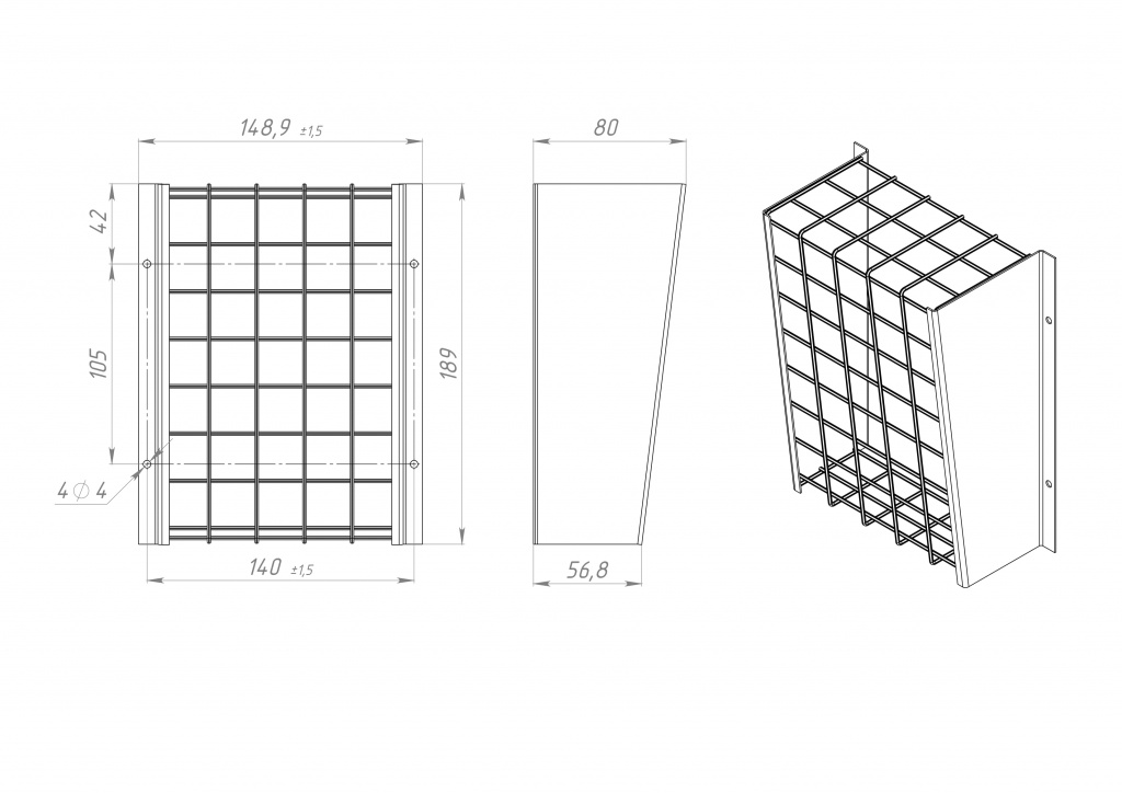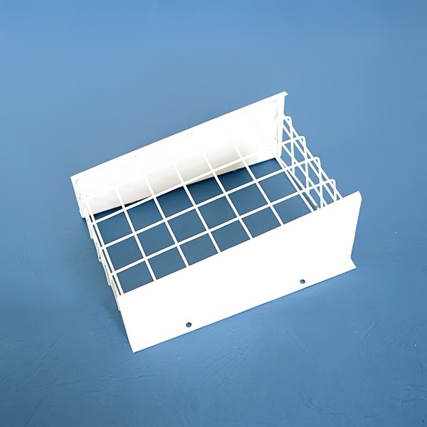Технические характеристики: размер 190*130*80 мм, размер ячейки защитной сетки 25*25 мм, толщина проволоки - 2 мм, цвет покрытия - белый.