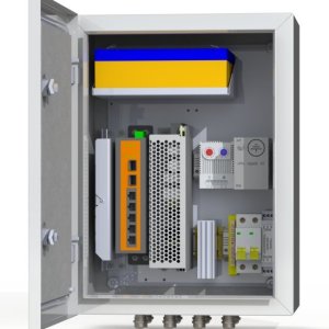 Краткое описание: Коммутационный термошкаф: промышленный управляемый коммутатор 4хRJ45 10/100/1000 Мб/с PoE 802.3 af/at watchdog, 2хSFP 1000 Мб/с бюджет PoE 140 Вт, блок питания 155Вт/48-58 В, обогреватель 50Вт, сдвоенный термостат, оптический кросс 4 порта SC, гермовводы 4хPG9, 4хPG13.5, автомат 6А, цвет серый, АКБ 12В 2.2Ач 4 шт, 230 В AC, 210Вт, устройство грозозащиты линии 220В и линий PoE, IP66, -60°С... +50°С, 300х400х210 мм.