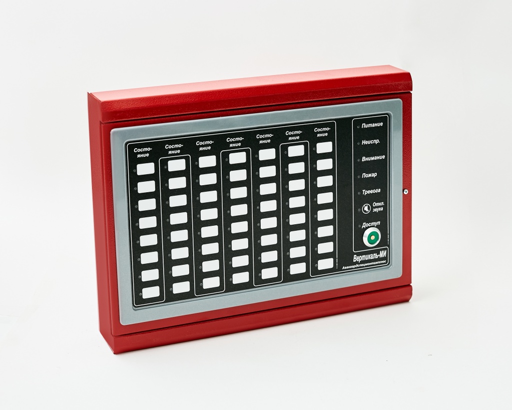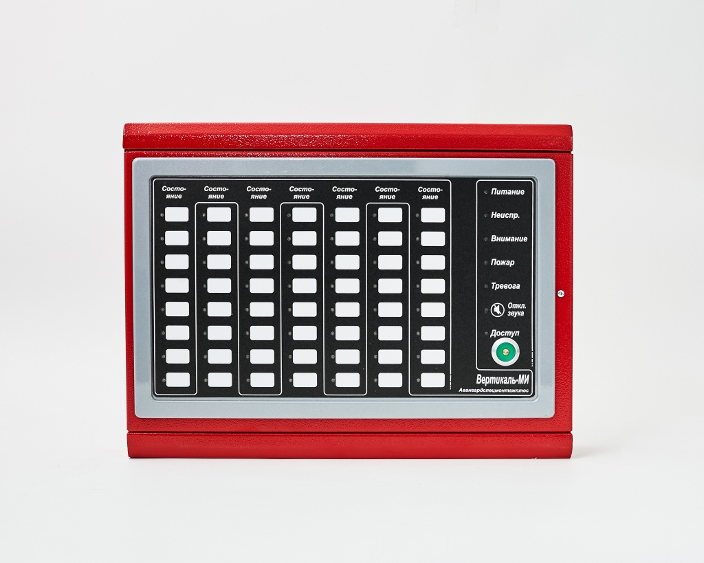 Модуль обеспечивает прием от центрального прибора управления «Вертикаль-ПУ» сигналов о состоянии элементов системы и режимах их работы по цифровой линии передачи данных и отображение этих состояний на единичных светодиодных индикаторах и встроенном звуковом сигнализаторе. Соответствие индикаторов МИ отображаемой информации устанавливается на стадии создания конфигурации для пульта управления «Вертикаль-ПУ».