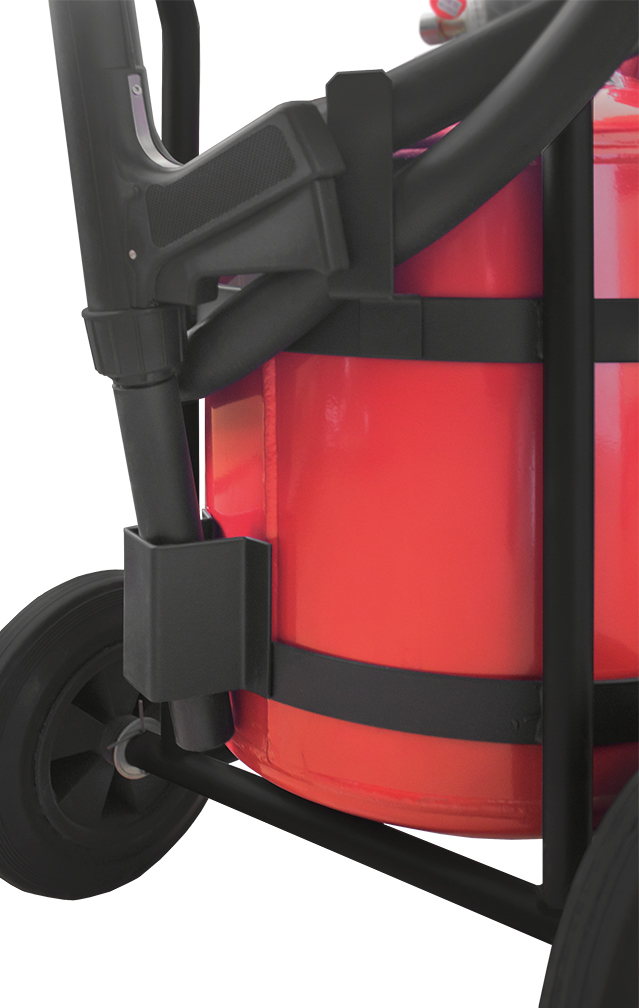Огнетушитель ОП-25 МИГ не предназначен для локализации возгораний металлов и прочих материалов, способных гореть без доступа воздуха. Порошковый огнетушитель эффективен для автозаправок, складских помещений и других объектов. Для удобства перемещения тяжелого огнетушителя он оснащен эргономичной съемной тележкой с обрезиненными колесами, диаметр каждого колеса — 200 мм.