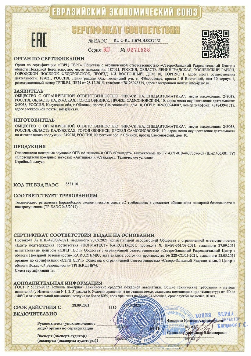 ОПЗ Антишок (ИВС-Сигналспецавтоматика)