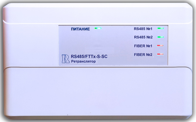 Ретранслятор RS485/FTTx-S-SC обеспечивает преобразование интерфейса RS485 в оптические сигналы и построение кольцевых оптических одномодовых линий связи.