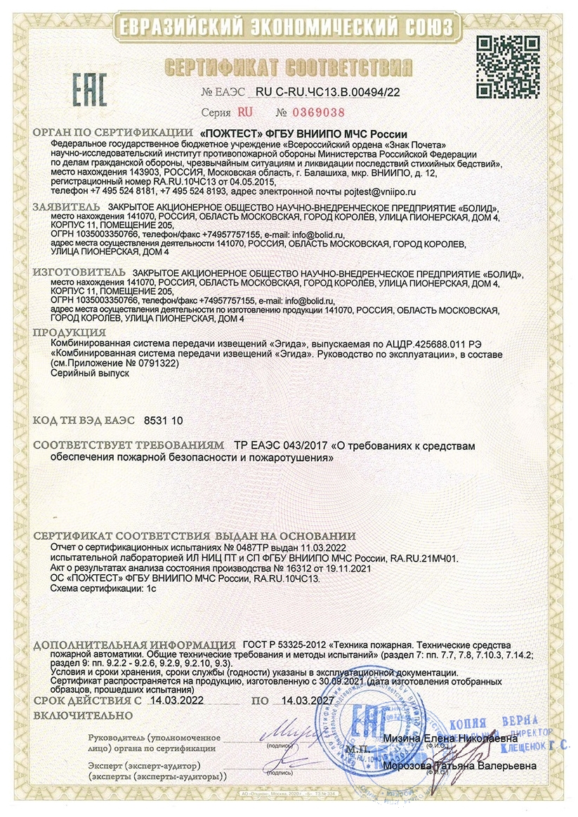 Краткое описание: Устройство оконечное объектовое, каналы передачи извещений: GSM, Ethernet. Кол-во номеров для передачи сообщений - 8, кол-во IP адресов для передачи сообщений - 8, RS-485, U-пит.10…28В, I-потр.100мА (max), программ. - WEB-интерфейс, t-раб.-30...+50°C, 150х103х35мм