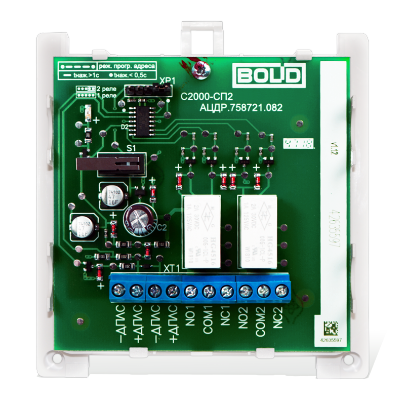 • Независимое управление двумя реле через контроллер "С2000-КДЛ" или "С2000-КДЛ-2И" от пульта "С2000"/"С2000М" или АРМ "Орион Про"