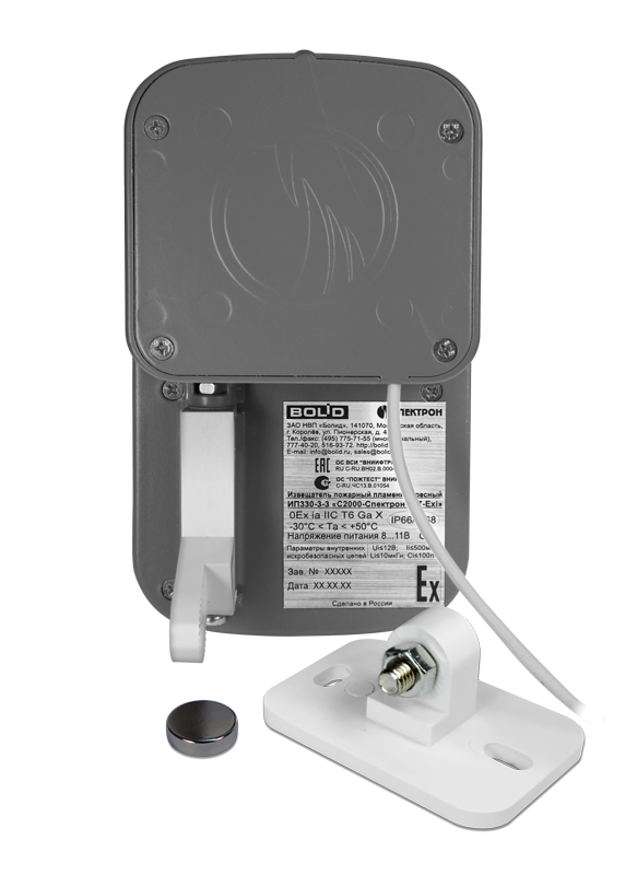 Предназначен для обнаружения загораний путем регистрации открытого очага пламени и выдачи извещений "Пожар", "Неисправность", "Тест".
