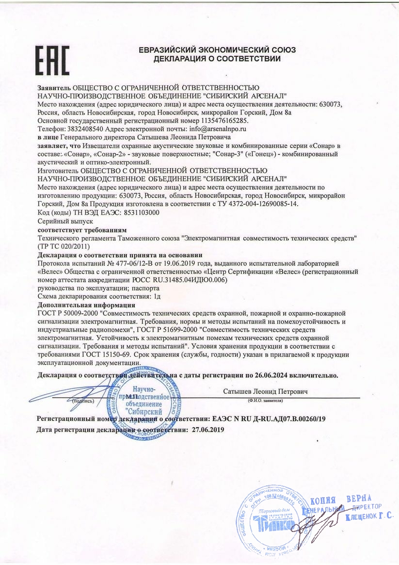 Краткое описание: Извещатель охранный поверхностный звуковой (разбития стекла); дальность зоны обнаружения до 6 м; регулировка чувствительности; тампер; U-пит.7...15 В; I-потр.15 мА; IP40, t-раб.-20...+50°C, 90х57х34 мм
