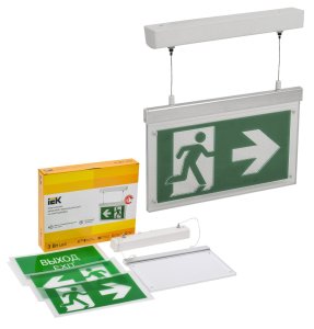 Краткое описание: Светильник аварийно-эвакуационный светодиодный встраиваемый, двусторонний, сменный знак; U-пит.230 В, P-потр.3 Вт, встроенный Ni-Cd аккумулятор 3.6 В/1.0 Ач, номинальное время работы: 3 ч; IP20, t-раб.-0…+40°C, 306х162.8х8.5 мм. Три сменных знака в комплекте: выход, выход налево, выход направо