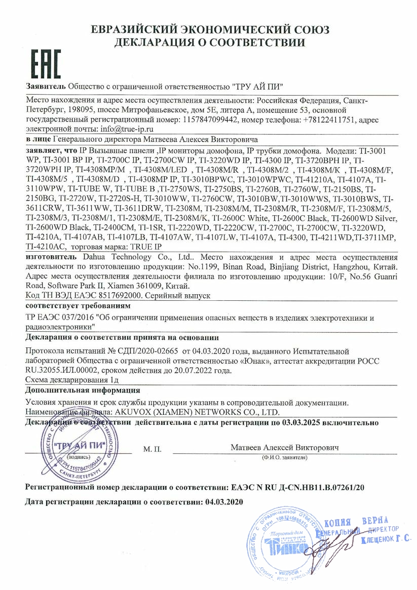 Краткое описание: 2 MP IP камера; Встроенное распознавание лиц (10 000 лиц); SIP, TCP/IP, RTSP, DTMF, Onvif; цветной сенсорный дисплей 8” 800*1280; 2 режима работы: SIP сервер; клиент для внешнего SIP сервера; LED подсветка; алюминий + ударопрочное стекло; проход по коду, брелку Mifare (10 000), отпечатку пальца (10 000), распознавание лиц (10 000); реле управления замком, подключение кнопки выхода; до 9 999 абонентов; WEB интерфейс; управление второй точкой прохода через реле TI-1SR; вызов на мобильные устройства (Android или iOS), монитор, аудиотрубку, ПК, пульт консьержа; ожидание - 12 Вт; работа — 24 Вт; питание DC 12 В/2 A; -20...+60 °С; IK07, IP66; врезной монтаж (TI-Box 4300), накладной - (TI-Vizor 4300); 389×145×43 мм
