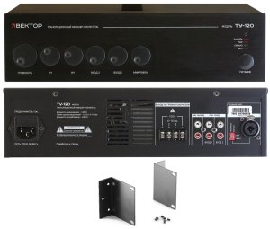 Краткое описание: Микшер-усилитель. Мощность 120Вт. Выход 100В/4-16Ом, 1 микр и 2 AUX входа, 1 AUX выход, 330х88х250 мм, вес 8 кг.