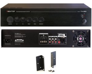 Краткое описание: Микшер-усилитель. Мощность 250 Вт. Выход 100 В/4-16 Ом, 1 микр и 2 AUX входа, 1 AUX выход. Питание 220 В. Размеры 482х88х410 мм. Вес 14,5 кг