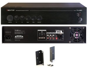 Краткое описание: Микшер-усилитель. Мощность 480 Вт. Выход 100 В/4-16 Ом, 1 микр и 2 AUX входа, 1 AUX выход. Питание 220 В. Размеры 482х88х410 мм.
